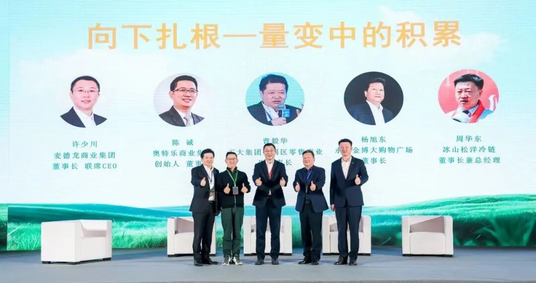 主题对话在麦德龙商业集团董事长兼联席CEO许少川的主持下,成都奥特乐商业董事长陈诚,正大集团中国区零售事业董事长曹毅华,永城金博大董事长杨旭东,冰山松洋冷链董事长兼总经理周华东先后分享了的观点。