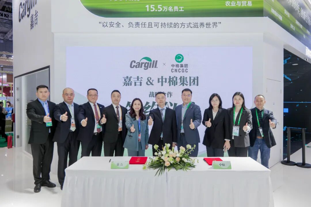 11月6日,在进博会8号展馆8.1A3-04展台,中棉集团与业务涵盖大宗商品贸易、加工、运输及风险管理等多元领域的跨国企业嘉吉集团签订战略合作协议。