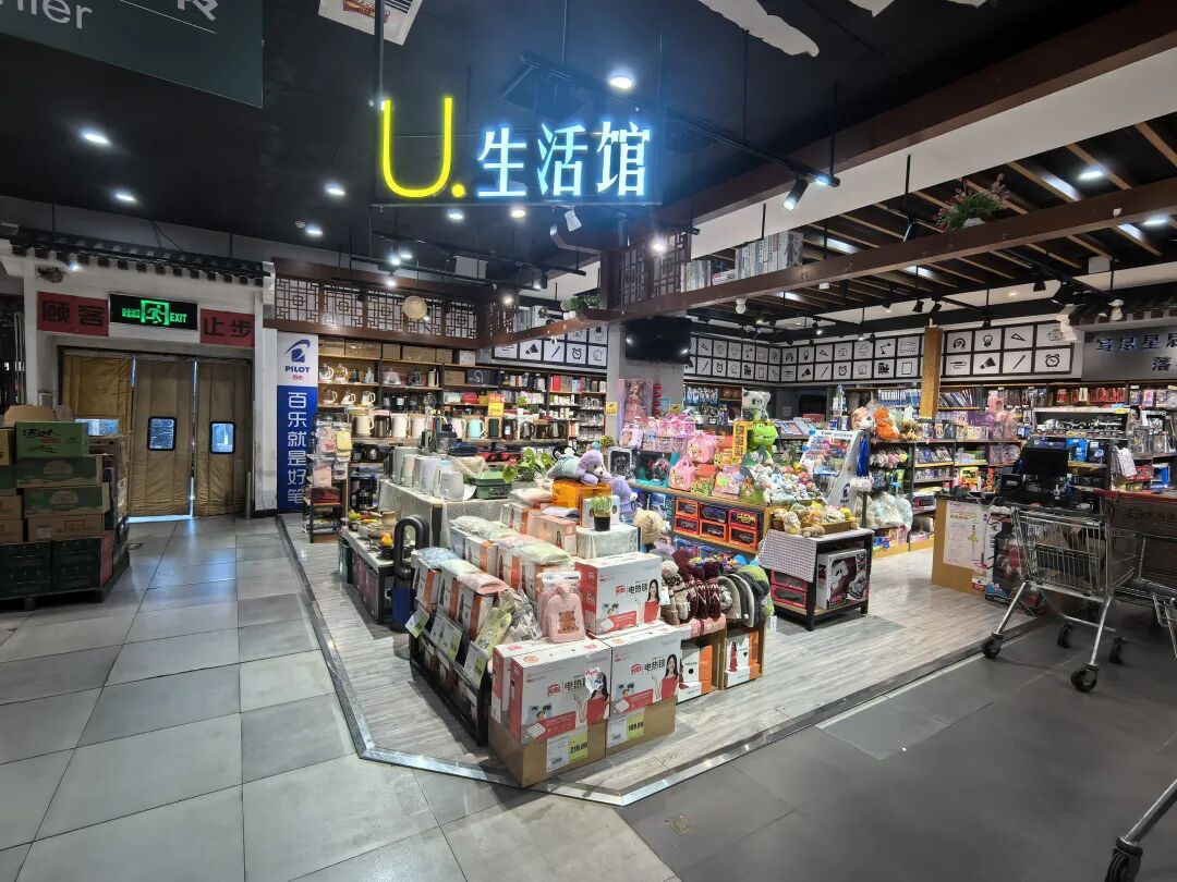 以玉泉路店最近的一次改造为例:为延续京味文化,门店融入灰砖青瓦、京剧脸谱等元素,并引入多家老字号品牌。针对周边便民服务不足的痛点,超市发压缩传统超市面积,划出近千平方米作为餐饮区,同时扩大生鲜餐厨经营占比。